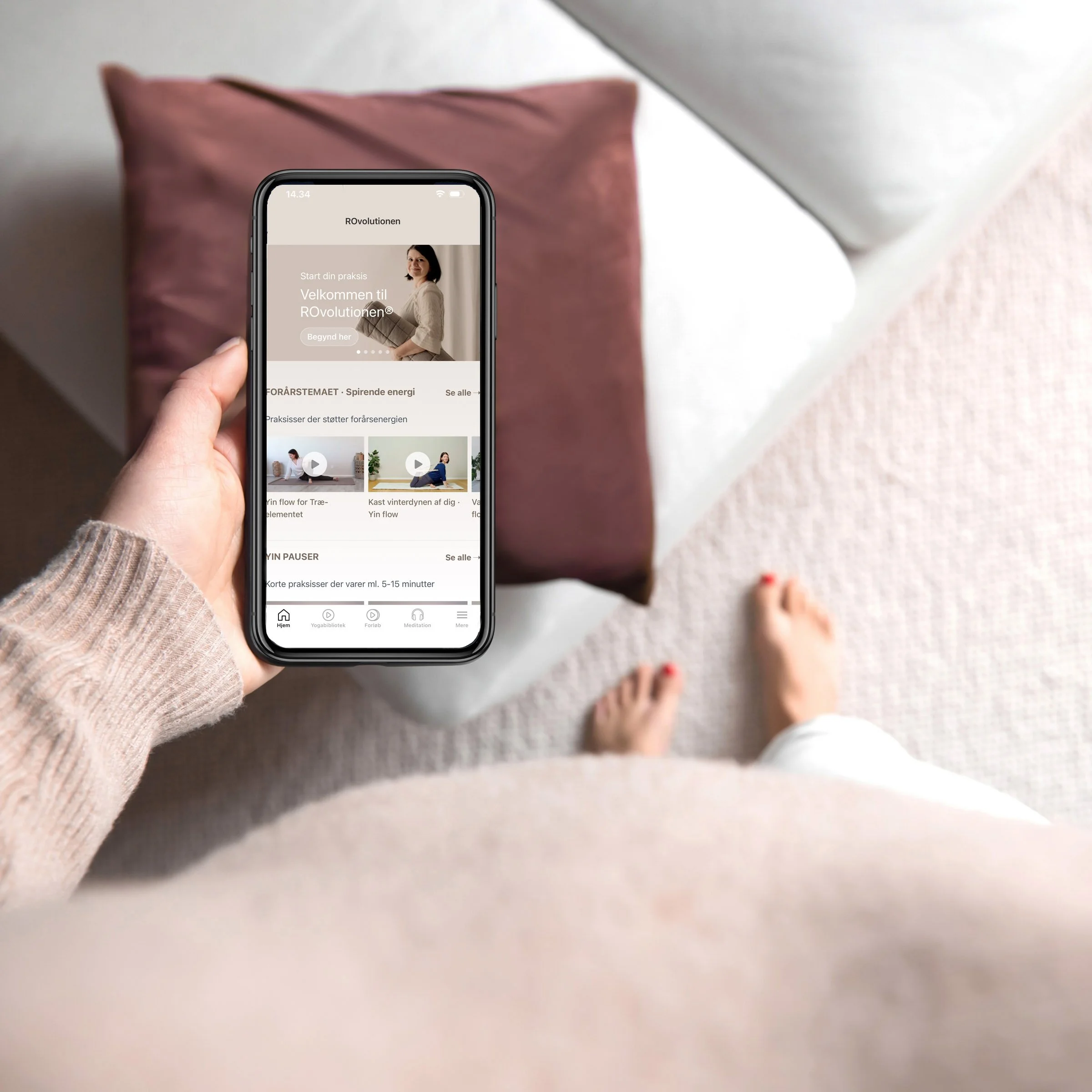 ROvolutionen® indeholder et stadigt voksende bibliotek af yogavideoer, guidede meditationer, åndedrætsøvelser og fordybelsestemaer, som du frit kan vælge imellem og tilpasse din daglige praksis – hvad enten du har 5 eller 75 minutter.